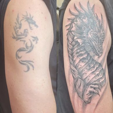 We love working with you to help hide or alter something that you feel doesn't suit you, or has aged poorly, or you just don't like anymore. Not all tattoos can be covered without some form of removal. Please book a consult with us to discuss all options and requirements.